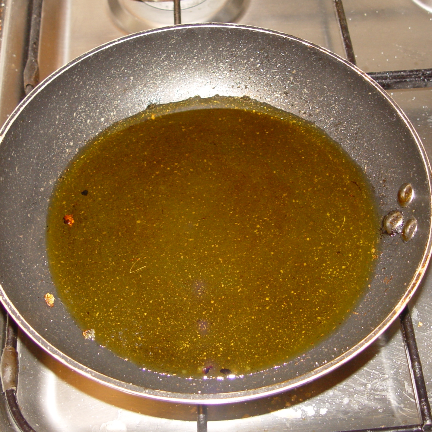 Megsóztam a piruló fűszereket. Kicsit lejjebb vettem a lángot, mert azért szineződött már és hozzáadtam az összes többi fűszert. Egy fél pici vereshagymát is felkarikáztam, de végül nem adtam hozzá a szószhoz. Viszont beleöntöttem a tészta félretett főzőlevét - ez remekül besüríti a szószt!