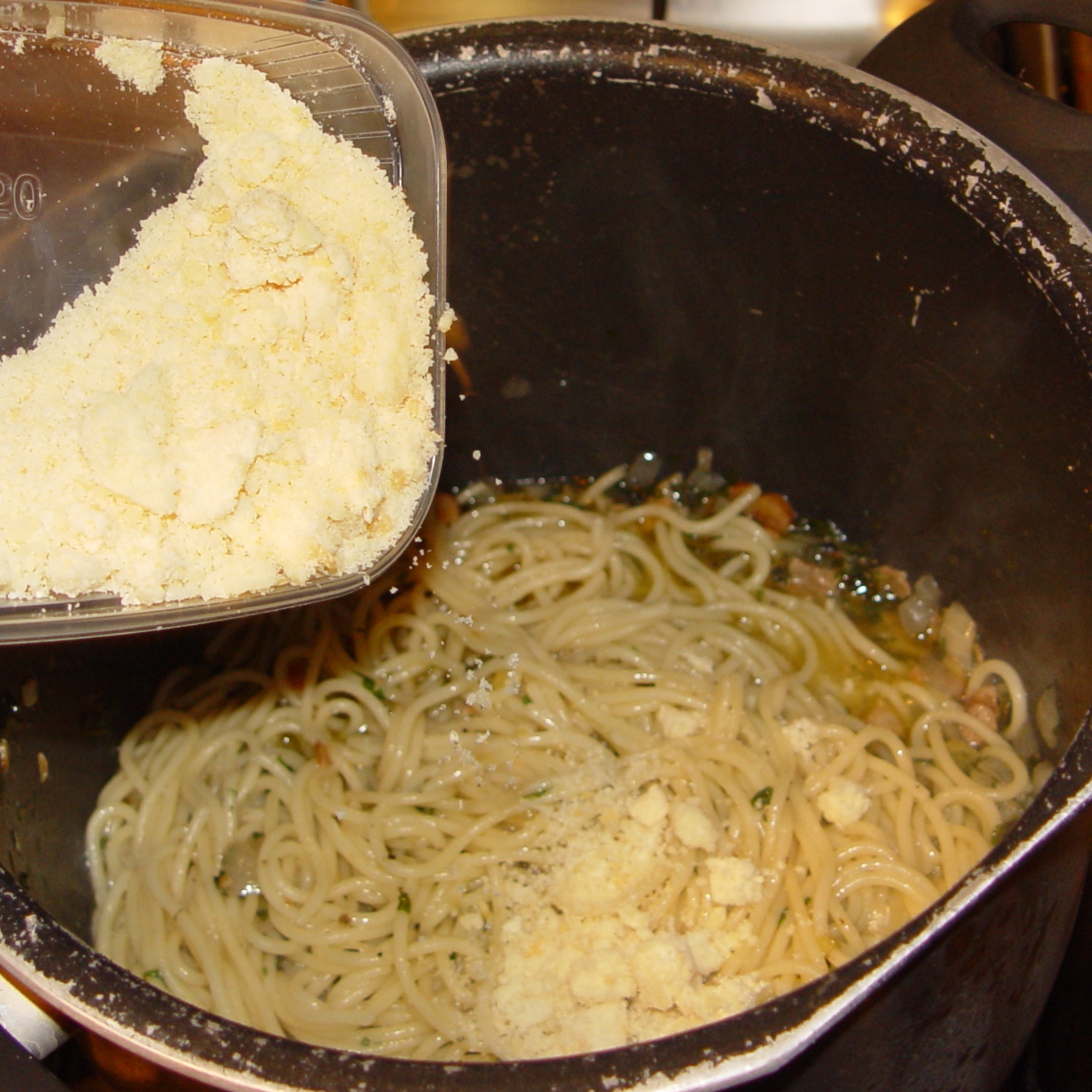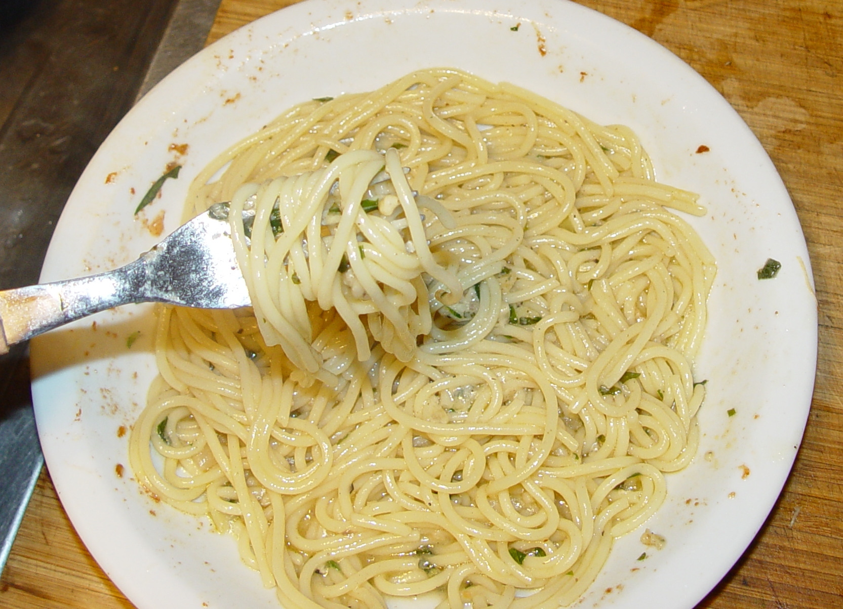 A lehető legegyszerűbb, ám igencsak ütős spagetti receptjét prezentálom. Mivel imádom a fokhagymát (és frissen szedtem a veteményből), nem álltam meg egy kis csilipaprika nélkül készíteni.